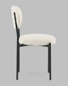 Обеденный стул Бриф для кухни подходит для современных и смешанных интерьеров и отлично смотрится в комплекте. Мягкое круглое сиденье и эргономичная спинка способствуют комфортному положению за столом. Обивка из плотного материала букле, которая обладает мягкостью и долговечностью, ножки изготовлены из металла в черном цвете. На ножках дополнительно предусмотрены специальные подпятники, которые предотвращают скольжение и повреждение напольного покрытия. Компактные размеры позволяют использовать его в различных интерьерах, добавляя элегантность и функциональность.Условия покупки