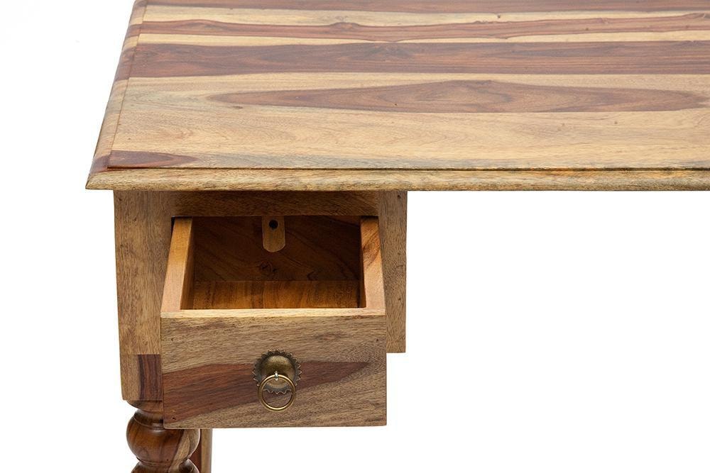 Элегантность и практичность удачно сочетаются в дизайне письменного стола из коллекции BOMBAY. Изящная форма, винтажная фурнитура из патинированной латуни и разнообразие текстуры массива палисандра подчеркивают красоту и благородство изделия. Стол по-современному функционален - удобная столешница и два выдвижных ящика – он с легкостью справится с любыми задачами по организации рабочей зоны. Качественная ручная работа и надежный каркас из массива палисандра, покрытый прозрачным лаком, обладает повышенной прочностью, долговечностью и позволят эксплуатировать стол в течение длительного времени. Модель отлично гармонирует с мебелью из коллекции BOMBAY. Поставляется в собранном виде. Страна-производитель: ИНДИЯ