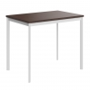 Столешница из ЛДСП т.22мм. Металлокаркас из трубы 40х20х1,5мм. без регулировки внизу. Опоры столов комплектуются пластиковой заглушкой. Покрытие краска белая полуматовая или алюминий. Металлокаркас соединяется со столешницей через металлическую проставку D-16мм. H-6мм.