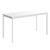 Столешница из ЛДСП т.22мм. Металлокаркас из трубы 40х20х1,5мм. без регулировки внизу. Опоры столов комплектуются пластиковой заглушкой. Покрытие краска белая полуматовая или алюминий. Металлокаркас соединяется со столешницей через металлическую проставку D-16мм. H-6мм.