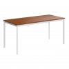 Столешница из ЛДСП т.22мм. Металлокаркас из трубы 40х20х1,5мм. без регулировки внизу. Опоры столов комплектуются пластиковой заглушкой. Покрытие краска белая полуматовая или алюминий. Металлокаркас соединяется со столешницей через металлическую проставку D-16мм. H-6мм.