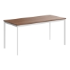Столешница из ЛДСП т.22мм. Металлокаркас из трубы 40х20х1,5мм. без регулировки внизу. Опоры столов комплектуются пластиковой заглушкой. Покрытие краска белая полуматовая или алюминий. Металлокаркас соединяется со столешницей через металлическую проставку D-16мм. H-6мм.
