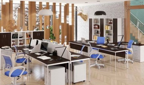 Столешница из ЛДСП т.22мм. Металлокаркас из трубы 40х20х1,5мм. без регулировки внизу. Опоры столов комплектуются пластиковой заглушкой. Покрытие краска белая полуматовая или алюминий. Металлокаркас соединяется со столешницей через металлическую проставку D-16мм. H-6мм. Комплектуется фронтальной панелью из ЛДСП т. 18мм. крепится к столешнице при помощи уголков.