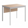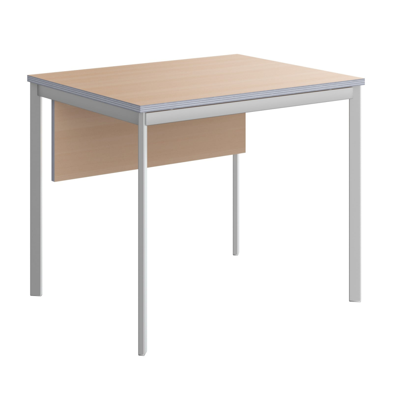 Столешница из ЛДСП т.22мм. Металлокаркас из трубы 40х20х1,5мм. без регулировки внизу. Опоры столов комплектуются пластиковой заглушкой. Покрытие краска белая полуматовая или алюминий. Металлокаркас соединяется со столешницей через металлическую проставку D-16мм. H-6мм. Комплектуется фронтальной панелью из ЛДСП т. 18мм. крепится к столешнице при помощи уголков.
