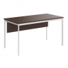 Столешница из ЛДСП т.22мм. Металлокаркас из трубы 40х20х1,5мм. без регулировки внизу. Опоры столов комплектуются пластиковой заглушкой. Покрытие краска белая полуматовая или алюминий. Металлокаркас соединяется со столешницей через металлическую проставку D-16мм. H-6мм. Комплектуется фронтальной панелью из ЛДСП т. 18мм. крепится к столешнице при помощи уголков.