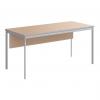 Столешница из ЛДСП т.22мм. Металлокаркас из трубы 40х20х1,5мм. без регулировки внизу. Опоры столов комплектуются пластиковой заглушкой. Покрытие краска белая полуматовая или алюминий. Металлокаркас соединяется со столешницей через металлическую проставку D-16мм. H-6мм. Комплектуется фронтальной панелью из ЛДСП т. 18мм. крепится к столешнице при помощи уголков.