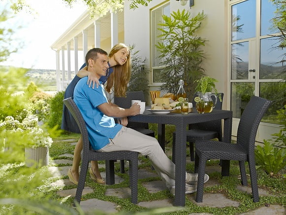 Melody Quarted - это практичный и элегантный стол с отделкой, напоминающей природное ротанговое переплетение. Он прекрасно заполнит небольшие придомовые пространства, такие как балкон или небольшой садик, а также великолепно дополнит дизайн интерьера. Изготовлен из стойкой к воздействию УФ-излучения и погодных условий пластмассы. Легко чистится и просто собирается. Предлагаемые столы имеют классические цвета.