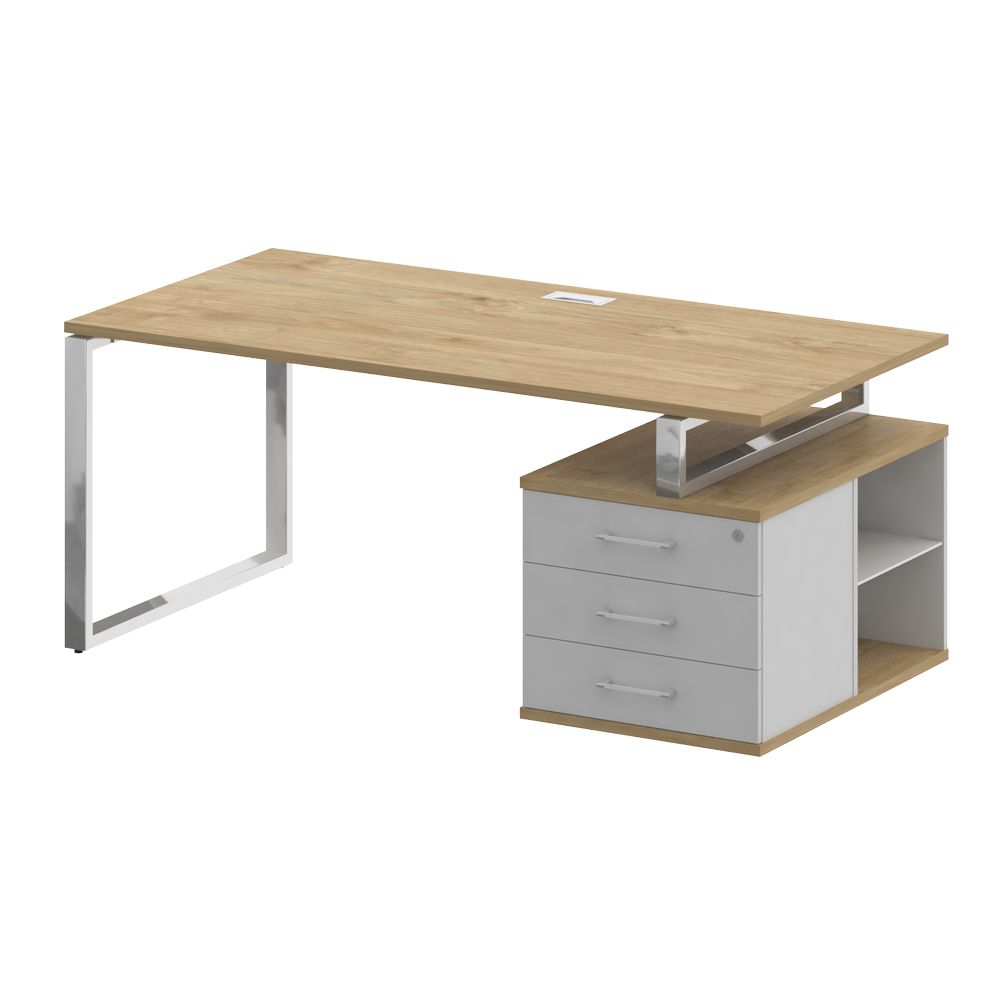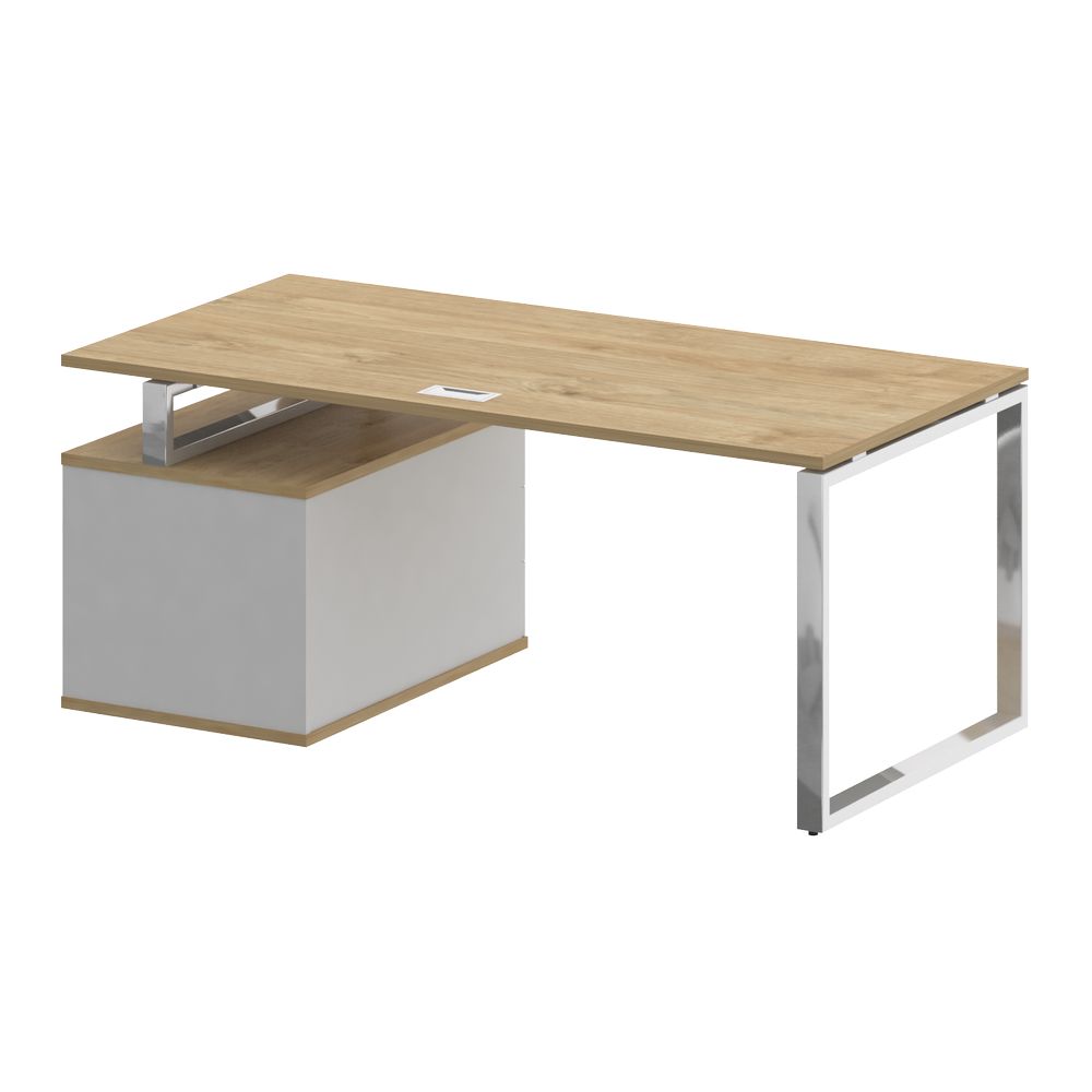 Стол руководителя с опорной тумбой , правый Рива SHIFT SK.SRT-180 R Тиквуд Светлый/Белый Бриллиант