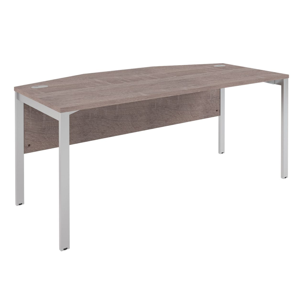 Столешница из ЛДСП т.25мм., кромка ПВХ т. 2мм., фронтальная панель из ЛДСП т. 18 мм., опоры - металлокаркас из трубы 50х25, цвет серебро. Стол комплектуется одной заглушкой.