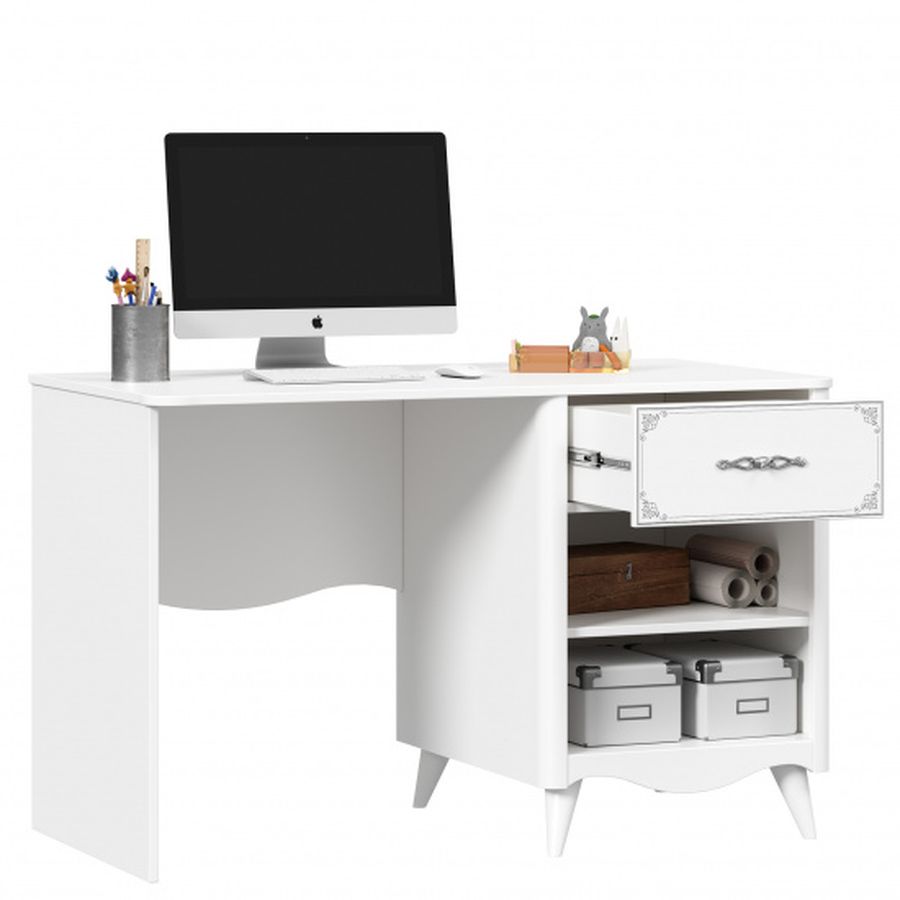 - Однотумбовый стол с 1 ящиком и отделением с 1 полкой за распашной дверью.
