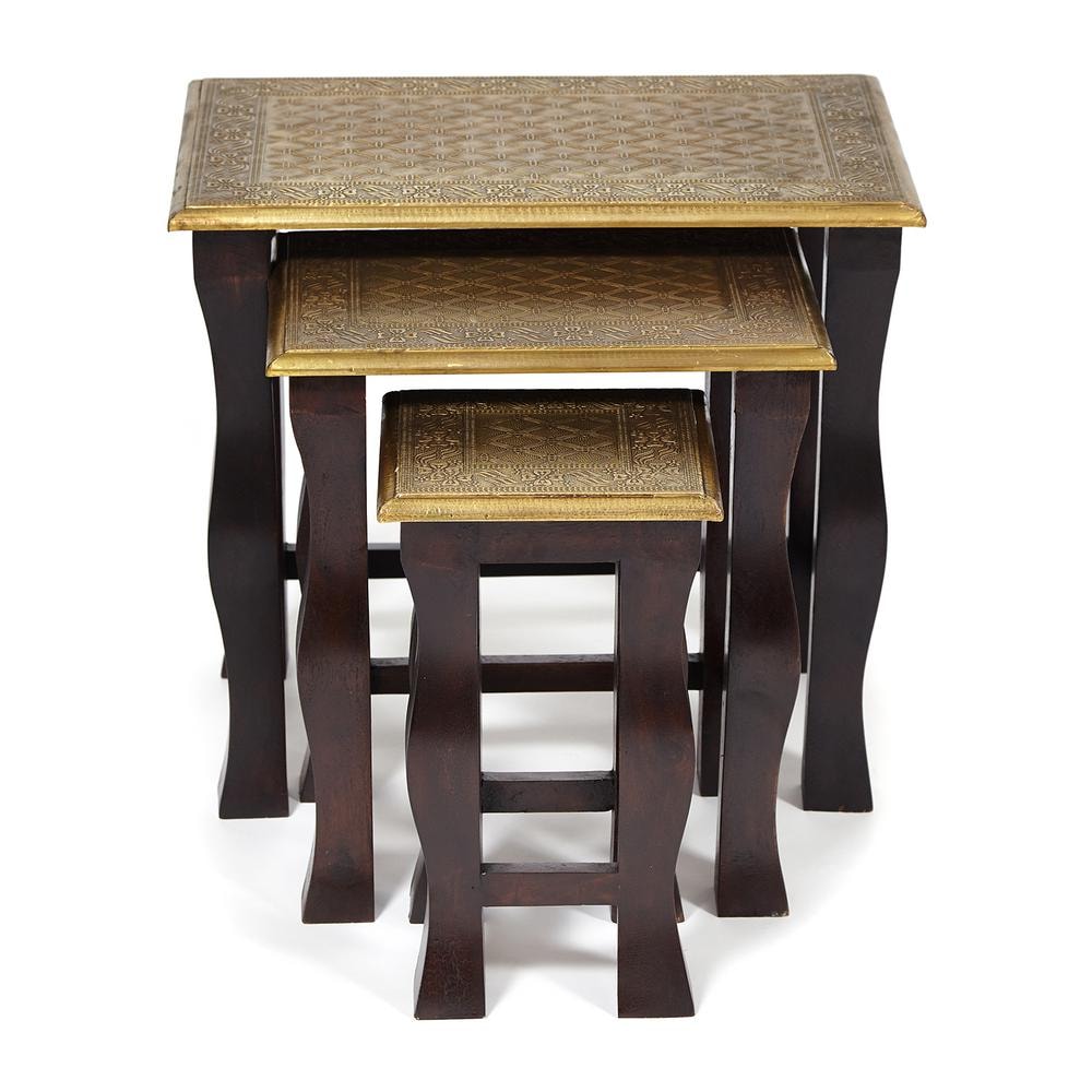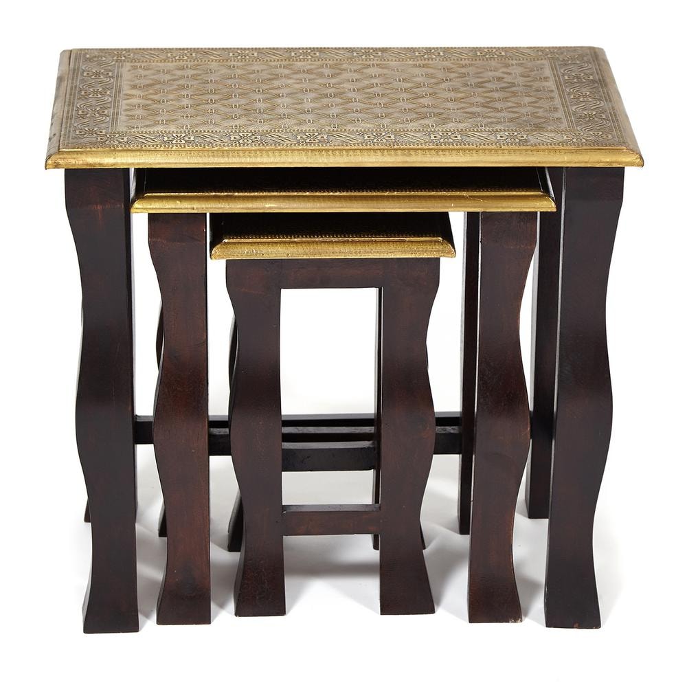 Комплект 3 столика Tetchair Secret De Maison BRAHMA mod. ND-009 дерево манго/латунная чеканка, 56х36х50, 41х30х45, 24х24х40