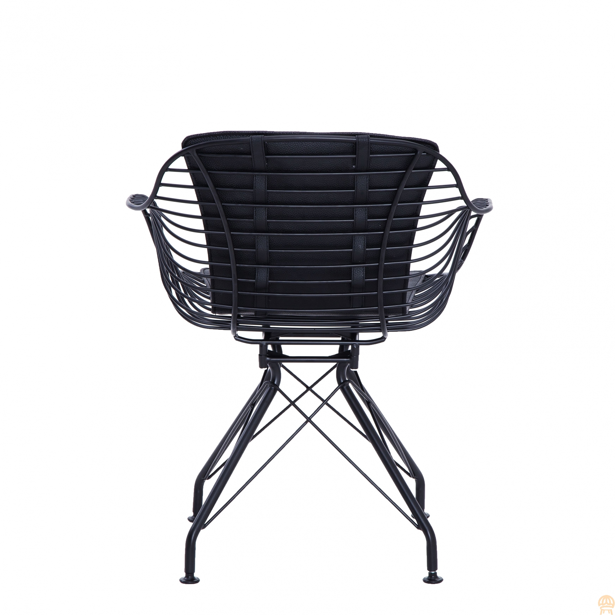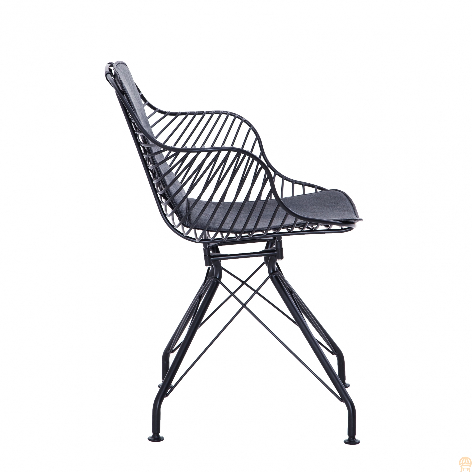 Современное кресло Thomas станет акцентом в интерьере кухни или обеденной зоны. Спинка и сидение выполнены из металлических прутьев черного цвета, из которых по бокам плавно переходят подлокотники. Обивка изготовлена из черной экокожи. Утонченные ножки выполнены из металла в тон сидения.