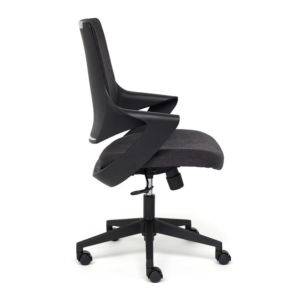 Офисное кресло WAVE из коллекции OFFICE – идеальное сочетание привлекательности, уникальности и надежности. Элегантная модель будет удачно смотреться как в офисе, так и в рабочем кабинете вашего дома. Пластиковый каркас, плавно переходящий в фиксированные подлокотники, смотрится необычно и оригинально. Удобная спинка кресла обеспечивает надежную опору для позвоночника и регулируется для комфортной посадки. Сиденье с мягким наполнителем из пенополиуретана высокой плотности уменьшит усталость при длительной работе. Прочная тканевая обивка проста в уходе, износостойка, сохраняет свой первоначальный вид продолжительное время. Полиамидная крестовина толщиной 640 мм с прорезиненными роликами основательна и устойчива к усиленной эксплуатации. Бесшумные ролики позволяют легко перемещаться на кресле с места на место, не повреждая ламинат или паркет. Эргономичное кресло WAVE черного цвета подчеркнет безупречный вкус владельца, будет радовать своей долговечностью, красотой и практичностью продолжительное время. Максимальная нагрузка модели 120 кг. Модель поставляется в разобранном виде. Необходима несложная сборка по прилагаемой инструкции. Страна-производитель: КИТАЙ