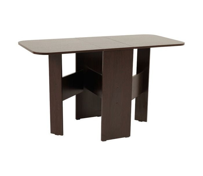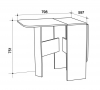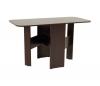 Компактный стол-книжка. Такое решение отлично подходит для небольших помещений. В сложенном виде длина стола всего 292 мм; длина каждого «крыла» 504 мм. Общая длина стола в разложенном виде 1306 мм. За таким столом удобно могут разместиться 6 человек. Максимальная нагрузка на стол составляет 50 кг. Изделие выполнено из ЛДСП первого сорта толщиной 16 мм. Края отделаны кантом ПВХ 0. 4 и 2 мм.