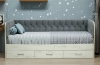Кровать с продольной мягкой спинкой Матрица Софа 14.1 800х2000 Дуб Сонома светлый Велюр 336 - это качественное изделие производства Матрица, соответствующее современному государственному стандарту.