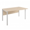 Столешница из ЛДСП т.25мм., кромка ПВХ т. 2мм., фронтальная панель из ЛДСП т. 18 мм., опоры - металлокаркас из трубы 50х25, цвет серебро. Стол комплектуется одной заглушкой.
